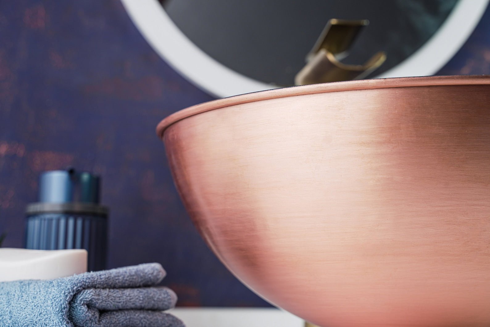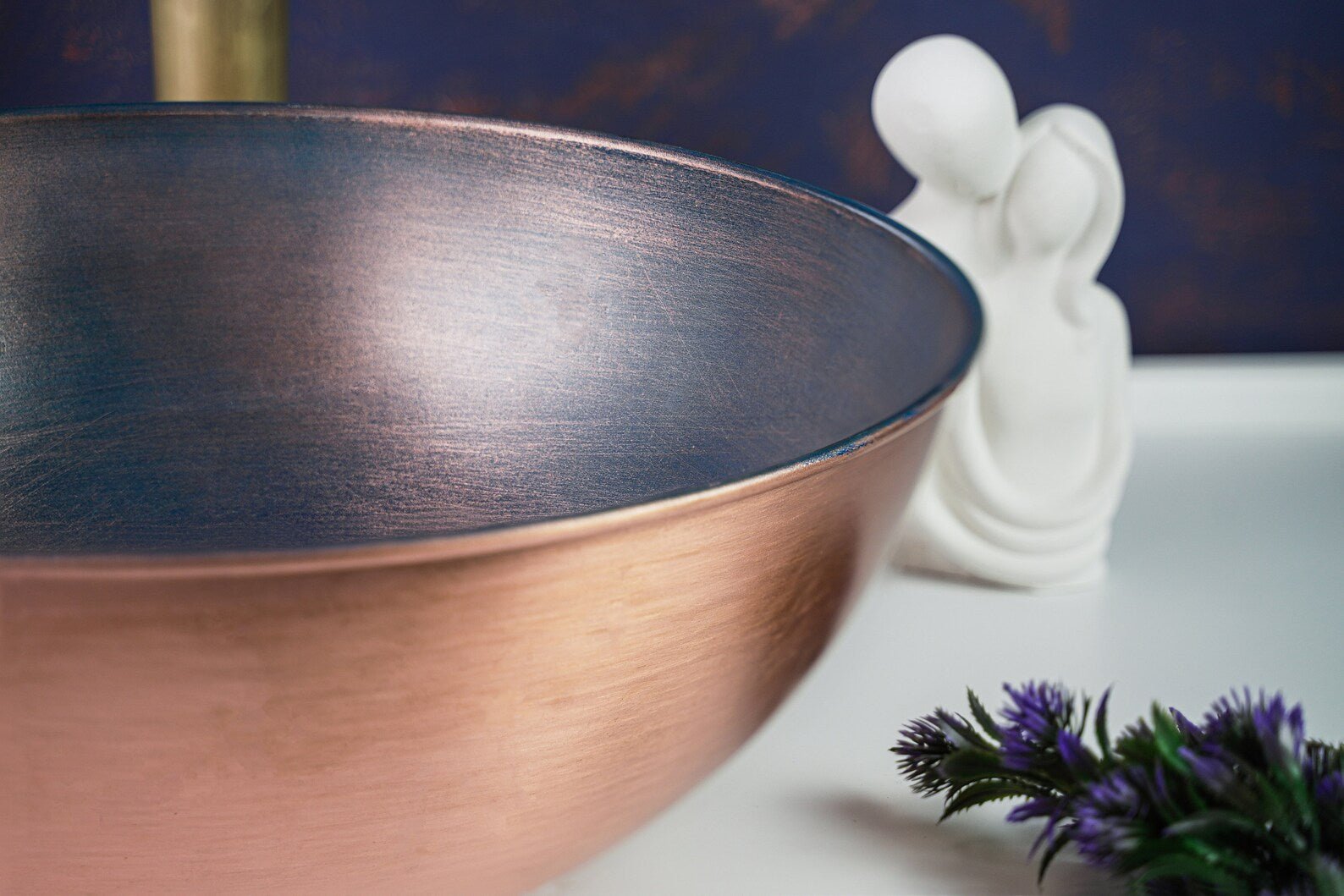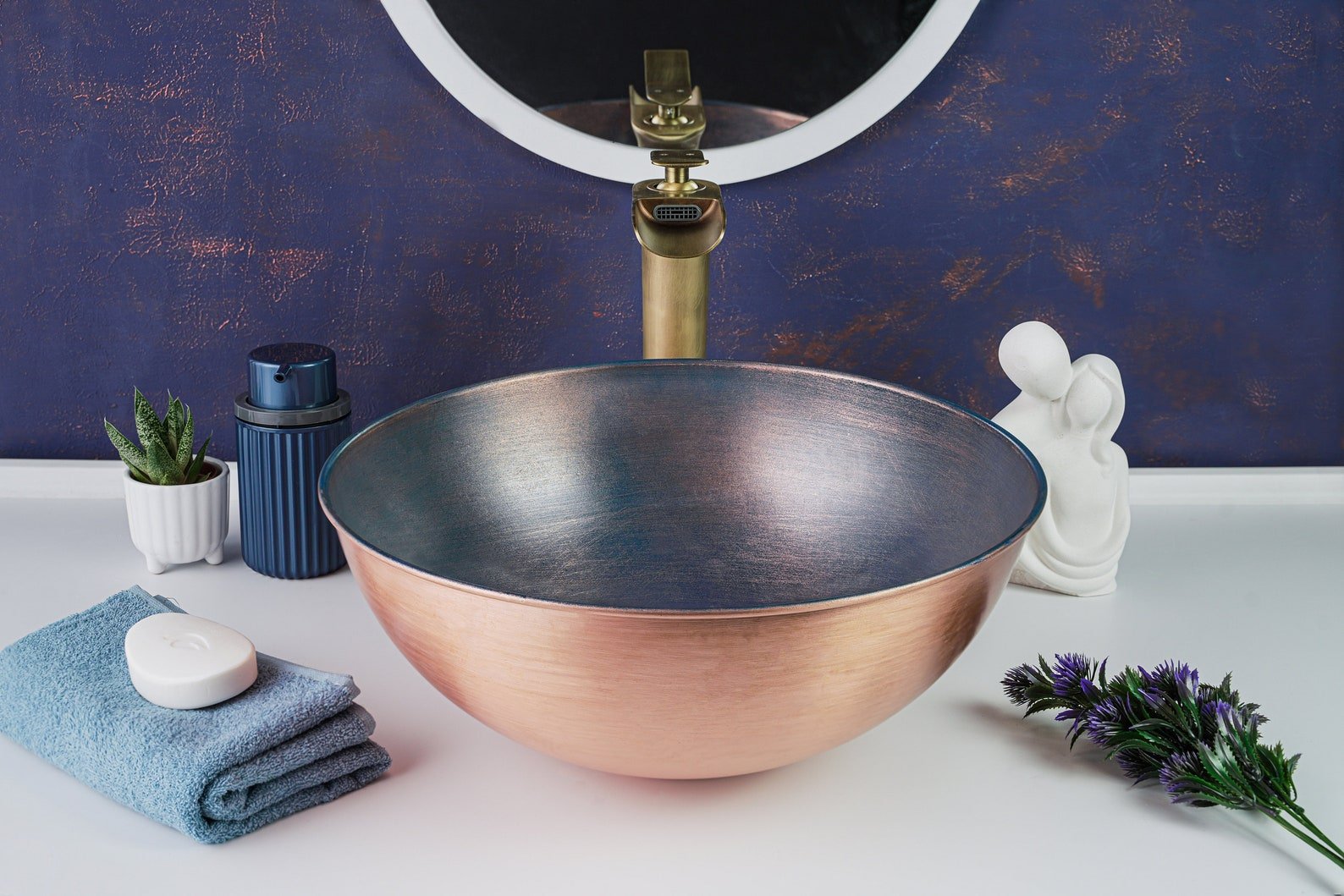 Handmade Blue Copper Bathroom Vessel Sink – Solid Copper with Drain Cap Included