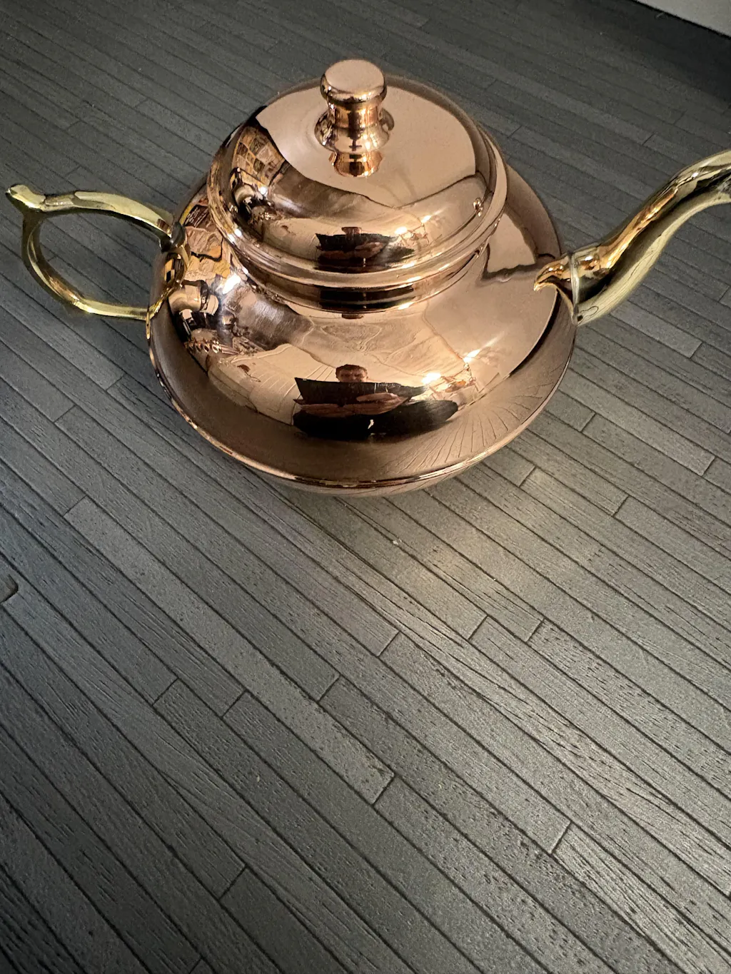 Hammered Solid Copper Teapot Stovetop with Wooden Handle – 1.6 Quart Shiny Finish Kettle