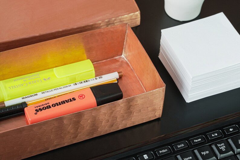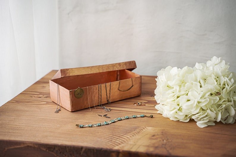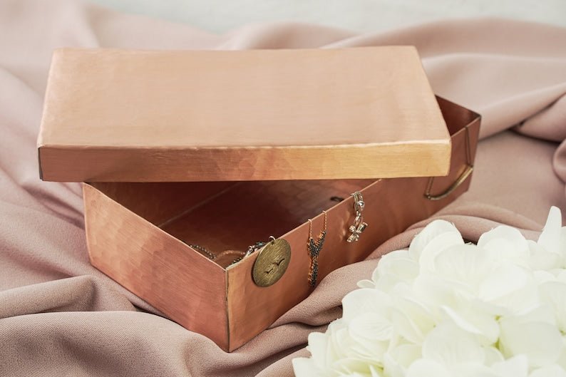 Handmade Solid Matte Copper Box with Lid | 8" x 4" x 2" Vintage Copper Decoration for Bedroom or Bathroom | Elegant Rectangular Jewelry Case