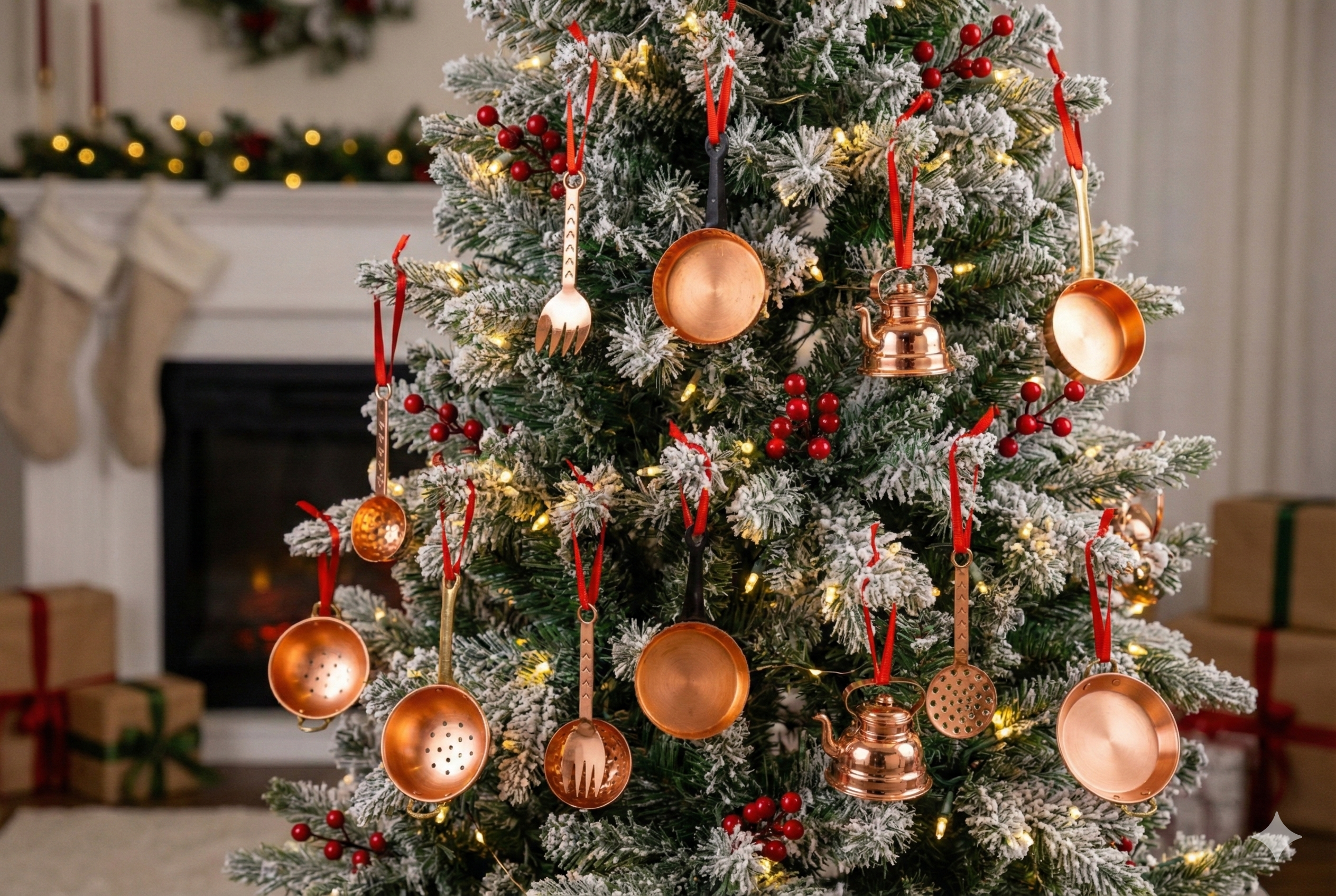 Mini Copper Slotted Spoon Toy – Dollhouse Utensil & Festive Xmas Tree Decor