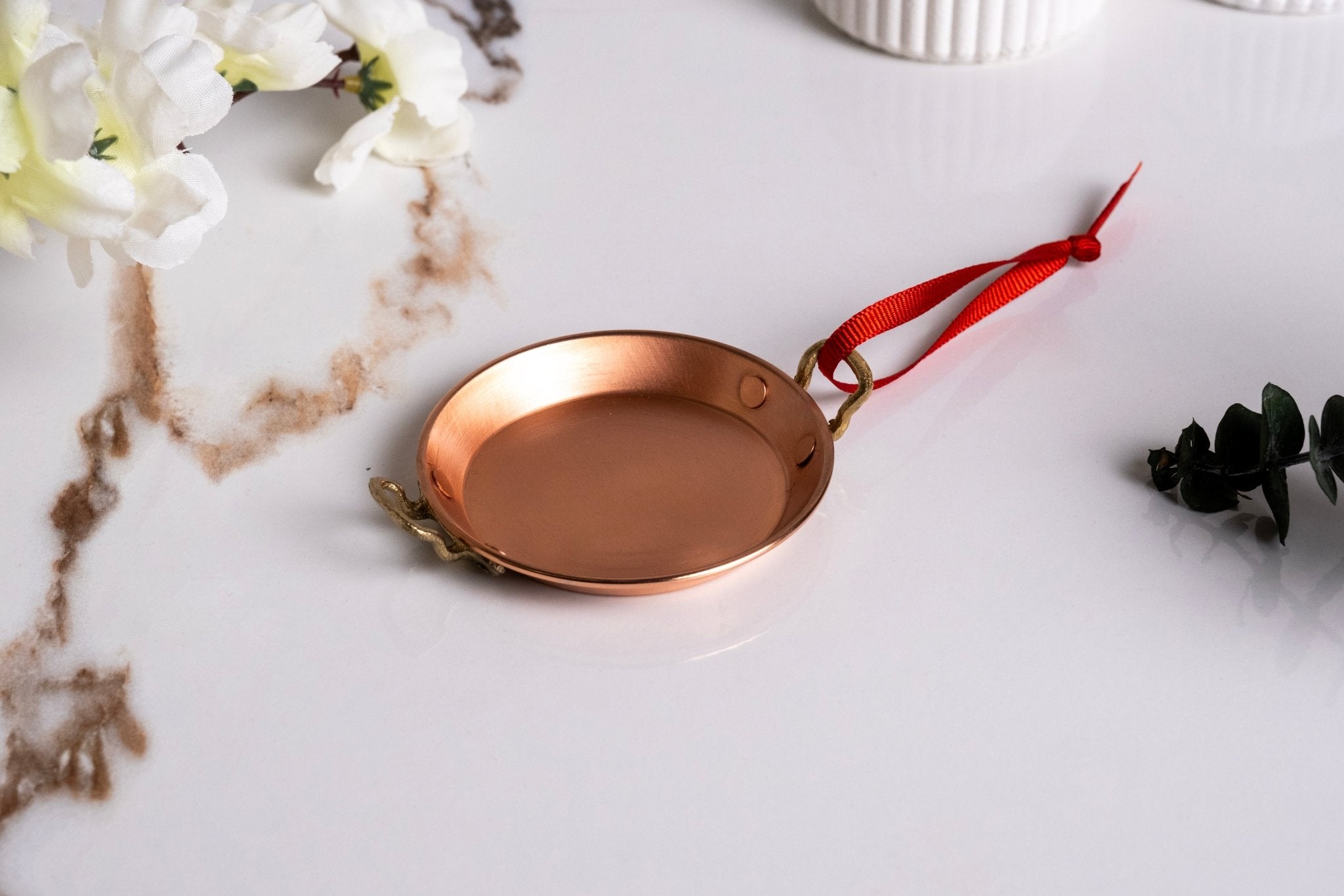 The polished copper surface and sturdy brass handles reflect timeless craftsmanship, making this versatile piece a delightful addition to any miniature cookware collection or holiday tree. Whether displayed in a mini kitchen, hung as a festive ornament, or gifted to a culinary enthusiast, this charming mini pan embodies the beauty of traditional copper cookware.