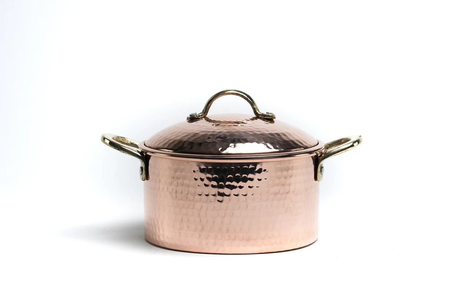 Massives Kupfer-Kochgeschirr- und Deckel-Set (Messinggriffe) | Handgefertigtes Kupfer-Küchenutensil