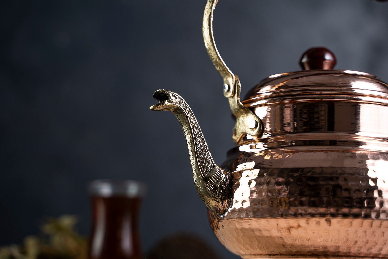 Patina-Teekanne aus massivem Kupfer für den Herd, 1,6 Quarts (1,5 Liter) | 100 % Kupferkessel, Küchenutensil, dunkle Patina-Oberfläche