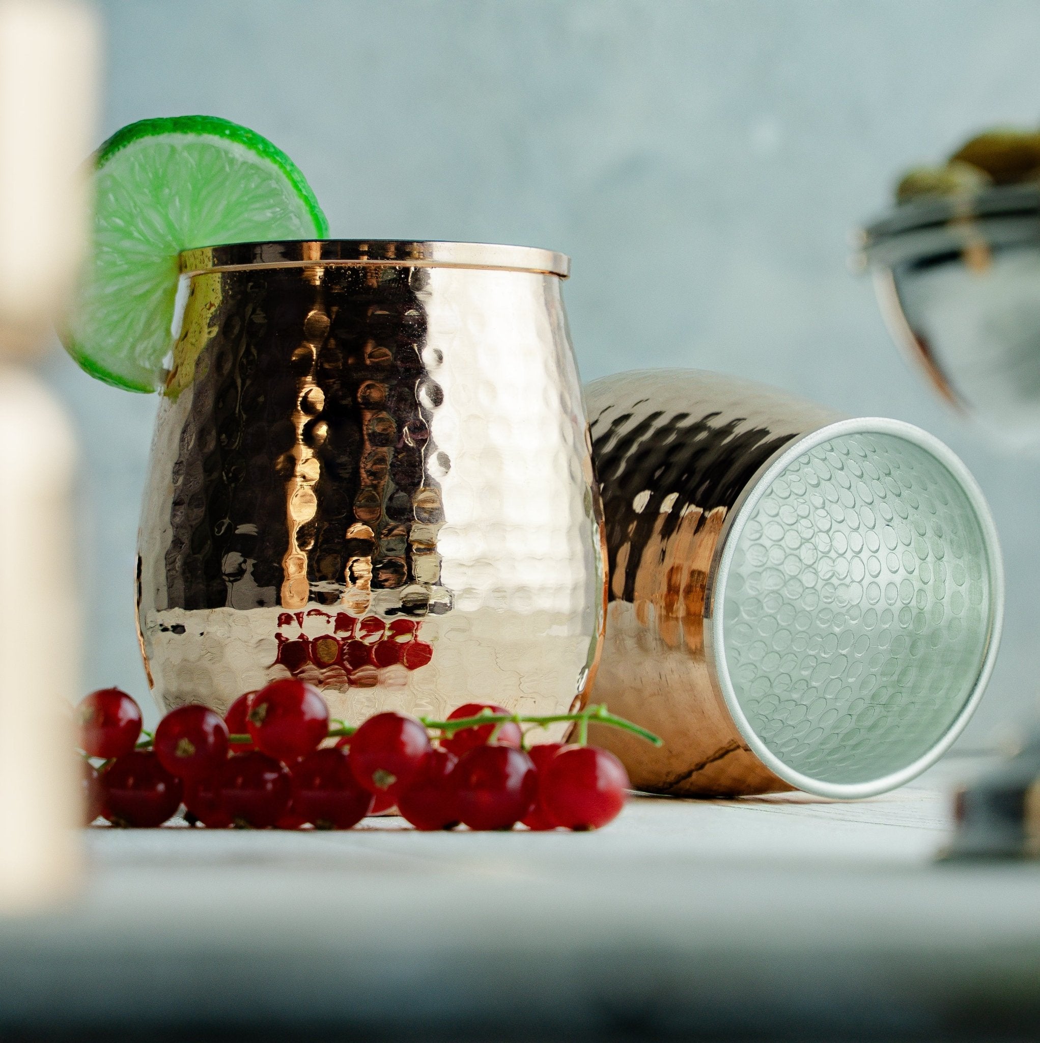 Set of Two Hand-Hammered Copper Glasses – 450ml Stemless Drinkware