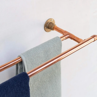 Handcrafted Copper Double Towel Rack | Handmade Copper Towel Bar for Bathroom and Kitchen