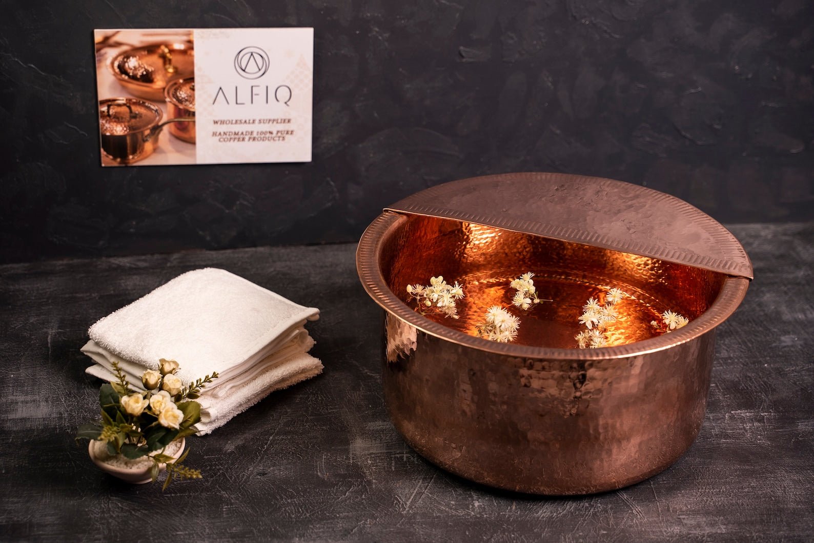 Handmade Solid Copper Foot Bath with Removable Footrest – Luxury Spa & Detox Soaking Basin