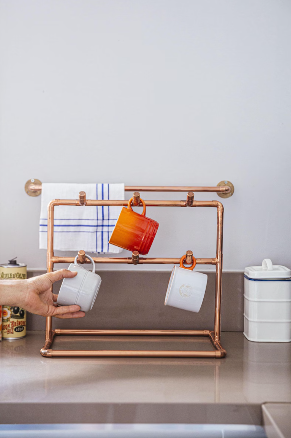 Handcrafted Copper Mug Holder - Industrial-Style Countertop Cup Organizer