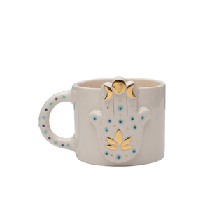 Handmade Hamsa Symbol Ceramic Mug With Gold Accents