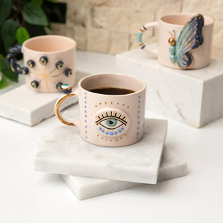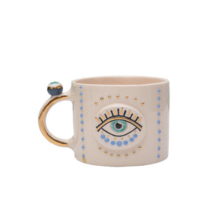 Evil Eye Ceramic Mug With Real Gold-Plated Handle