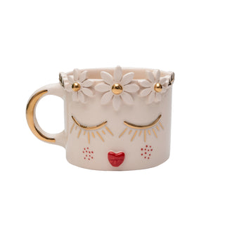 Handmade Golden Blossoms Valentine’s Day Mug – Floral Crown & Shimmering Gold Accents