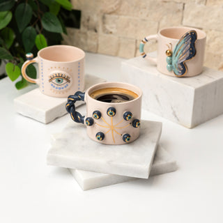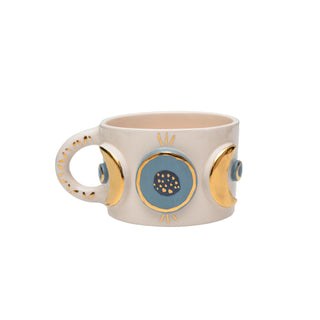 Handmade Evil Eye Ceramic Mug With Braided Handle - 24ct Gold Detailed