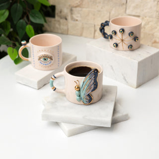 Handmade Ceramic Mug With Real Gold-Plated Butterfly & Floral Design