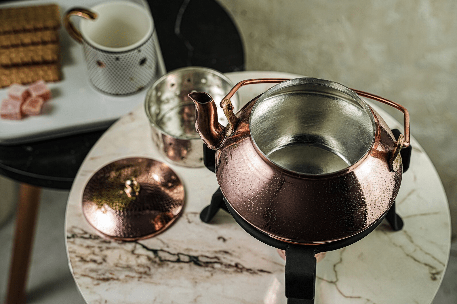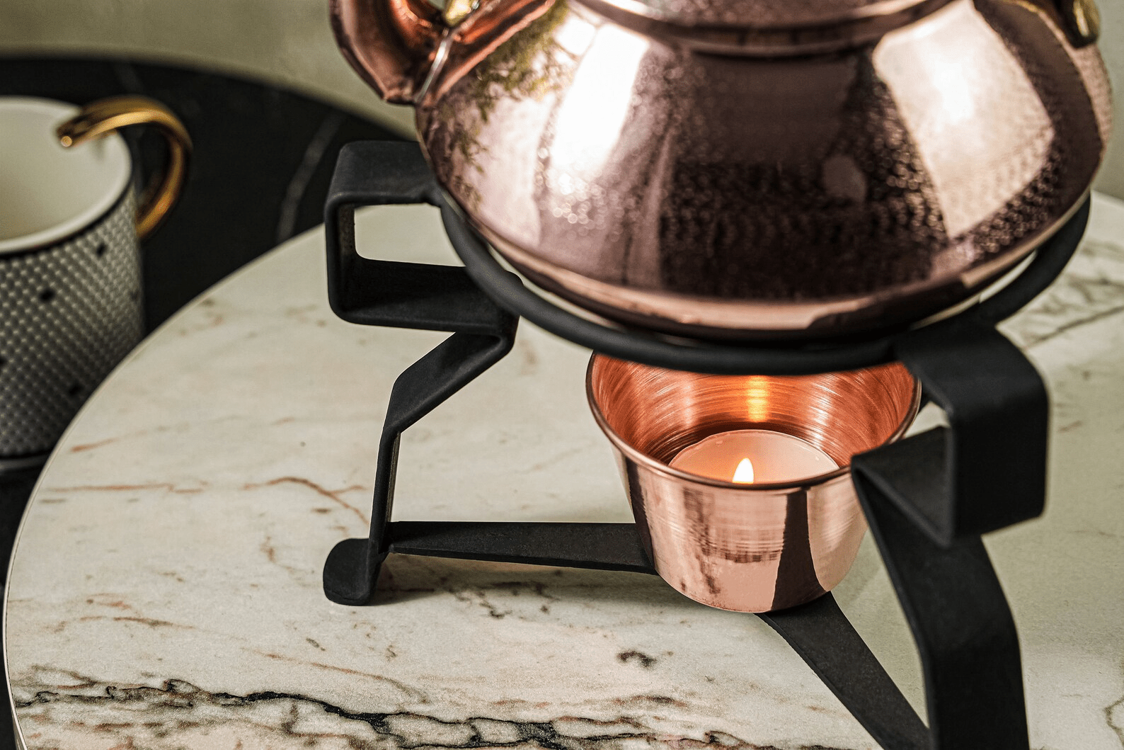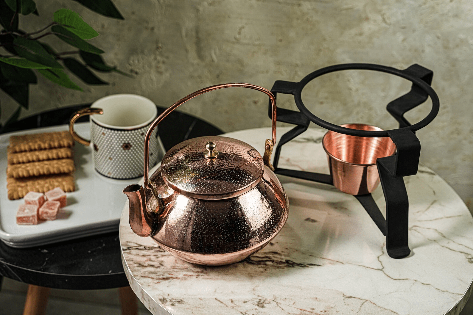 Solid Copper Tea Kettle With Iron Warmer Stand | Handmade Copper Teapot & Housewarming Gift (1.5 Quartz)