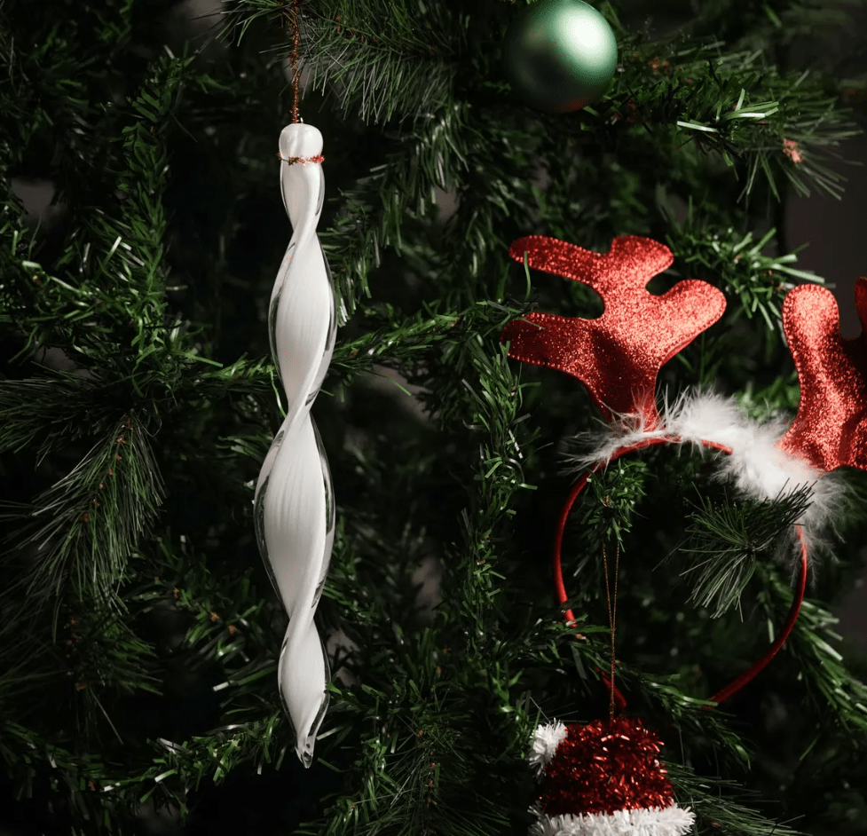 Hand-Blown Twisted Glass Tree Decoration – Pink New Year Ornament