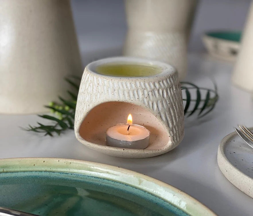 The Hic Ceramics Censer brings tranquility and artistry to your space through thoughtful craftsmanship and timeless design. Each piece is shaped and refined by hand in our solar-powered Urla workshop, undergoing eighteen meticulous stages of creation and two high-temperature firings. The result is a piece of enduring beauty, where subtle textures and tonal variations celebrate the handmade process. Available in serene hues of Snow White, Stone, and Sand, this censer transforms essential oil diffusion into a sensory ritual of calm and elegance.