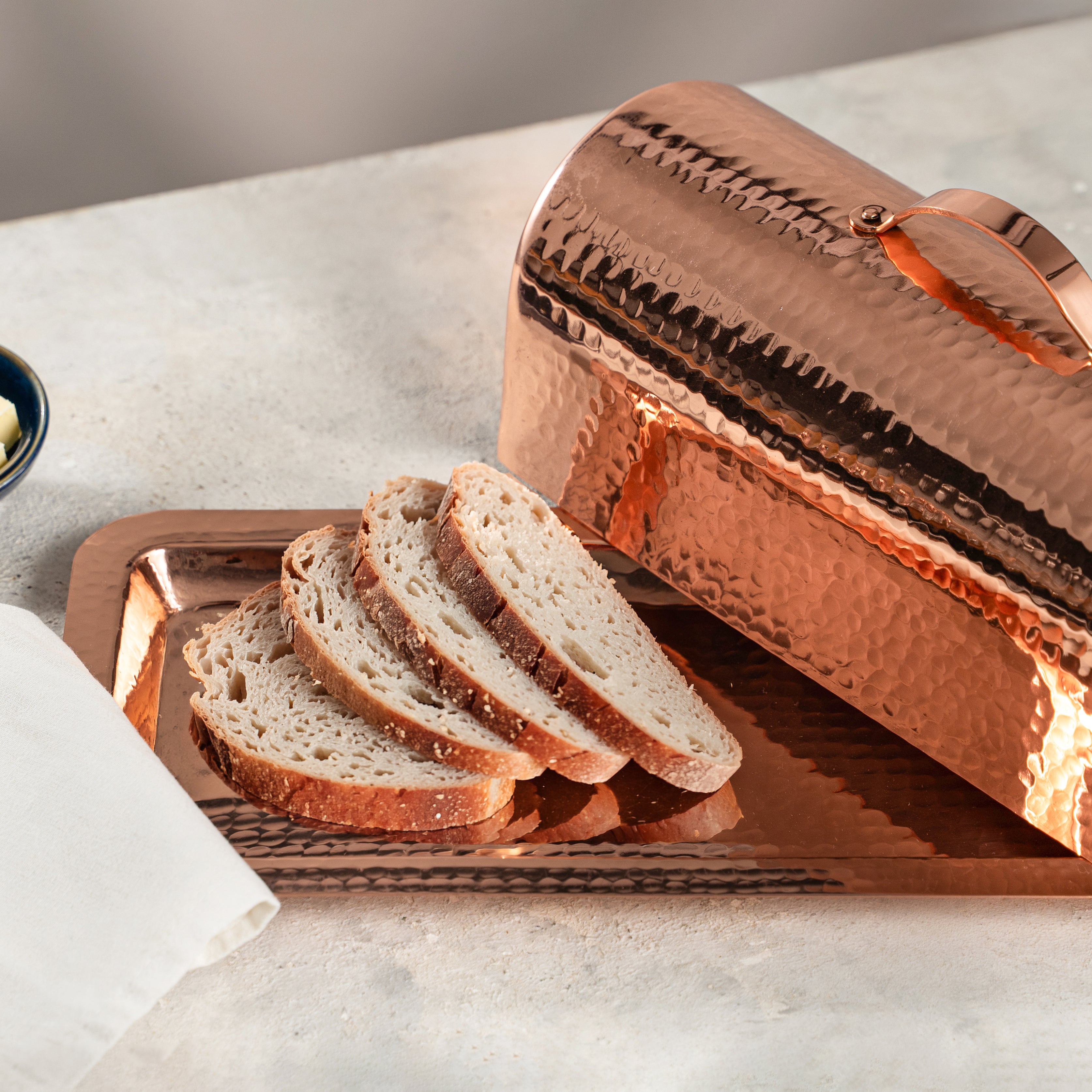 Handmade Copper Bread Box with Lid, 100% Solid Hammered Copper Bread Keeper