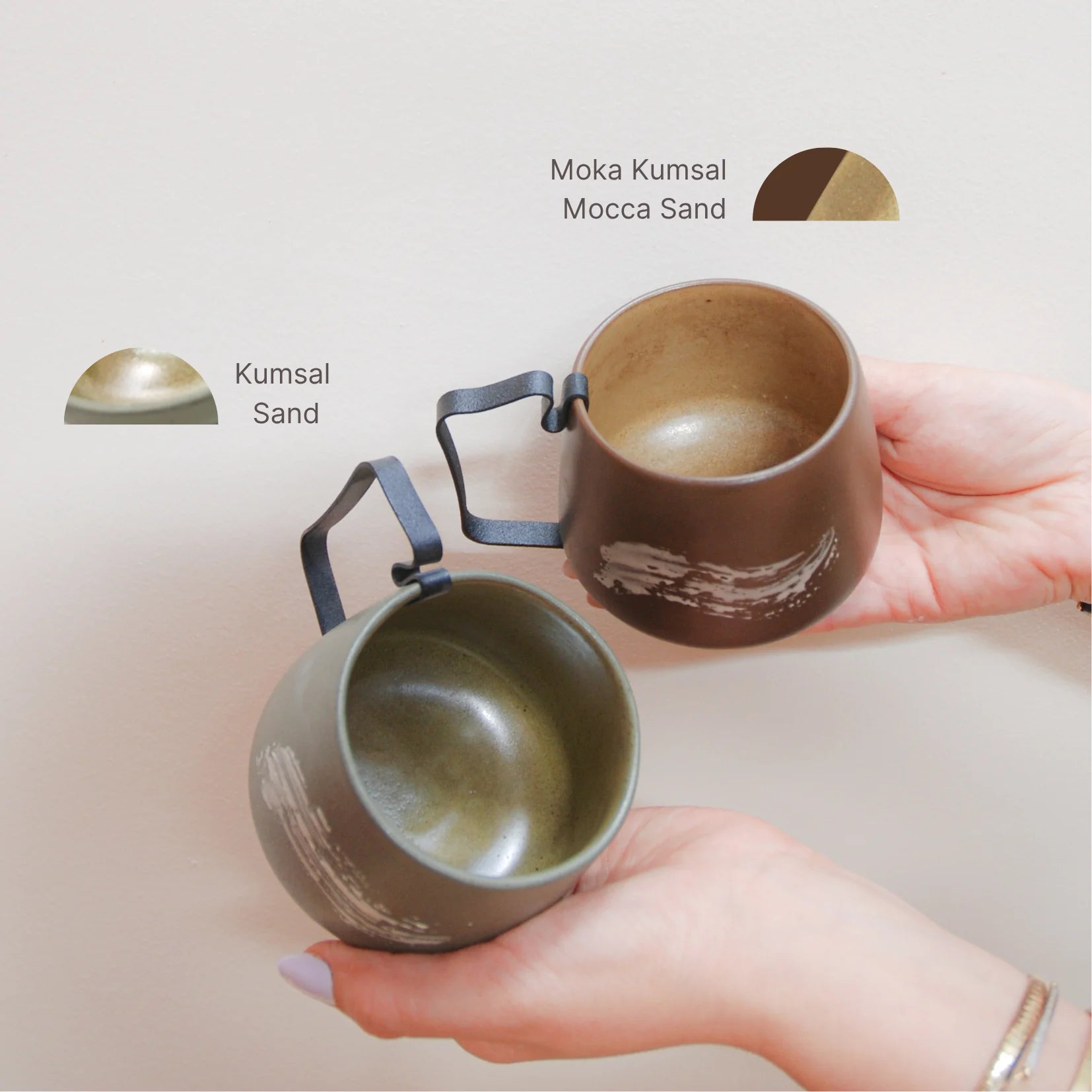 Handcrafted in the sun-powered Hic Ceramics studio in Urla, this 320 ml medium cup embodies the perfect balance of elegance and utility. Each vessel is shaped from durable, food-safe stoneware, fired twice at high temperatures, and meticulously handled through eighteen artisanal steps. The removable stainless steel handle offers a contemporary touch and everyday comfort, while subtle variations in glaze and texture celebrate the individuality of handmade work. Available in a refined palette of River, Sand, Snow White, Stone, Olive Forest, Red, and Mocca Sand, this cup elevates every tea or coffee ritual with quiet sophistication.